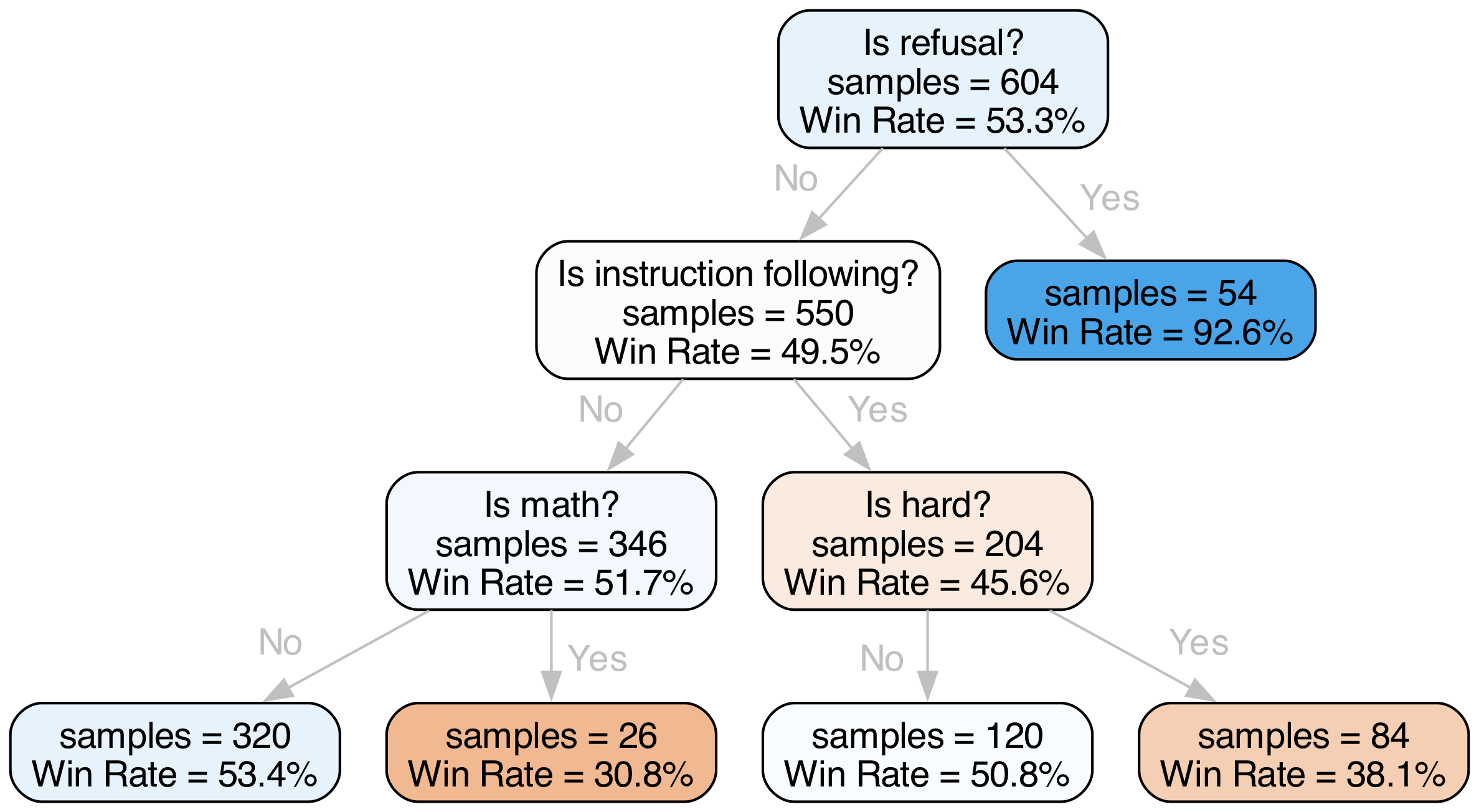 - Exclude Refusal: Excludes all battles where one or more LLM refused to respond. We currently identify refusals via simple keyword matching (eg. “I can’t assist”).