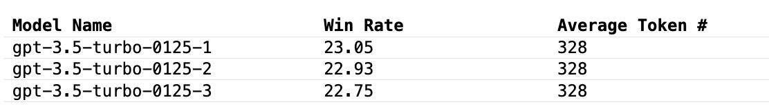 We find that even with temperature=0, GPT-4-Turbo may still generate slightly different judgments. Here we repeat the judgments for gpt-3.5-turbo-0125 three times and report its variance. Due to limited budget, we can only evaluate all the models once. We recommend using the confidence intervals to determine model separation.