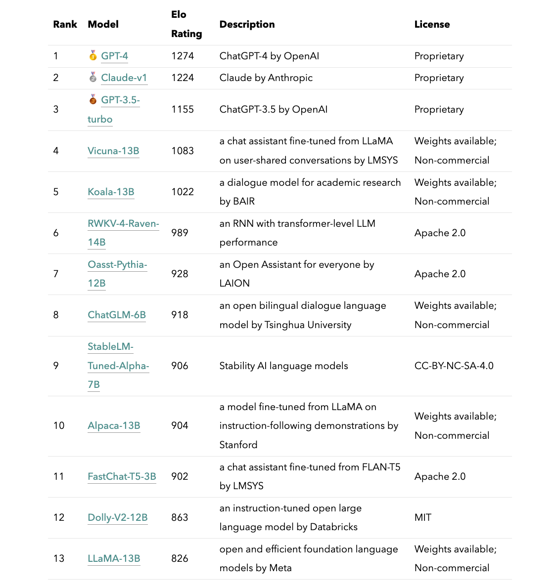 We release an updated leaderboard with more models and new data we collected last week, after the announcement of the anonymous Chatbot Arena. We are actively iterating on the design of the arena and leaderboard scores.