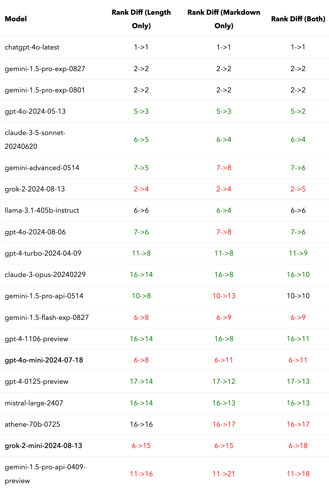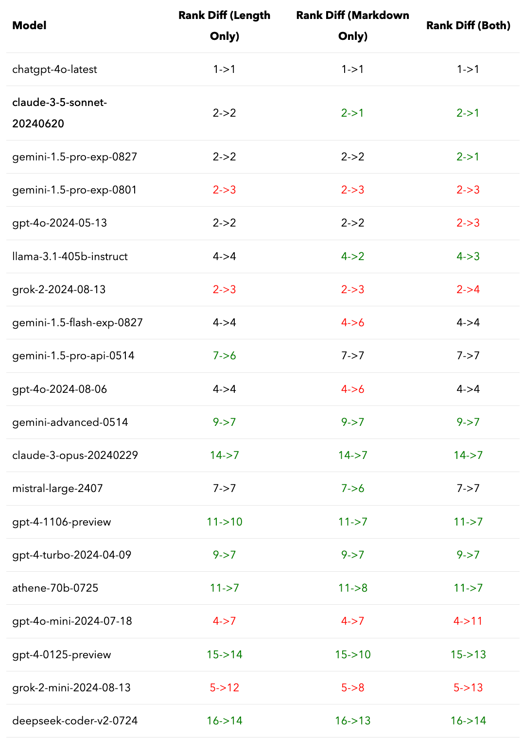We have answers for you. We controlled for the effect of length and markdown, and indeed, the ranking changed. This is just a first step towards our larger goal of disentangling substance and style in Chatbot Arena leaderboard.