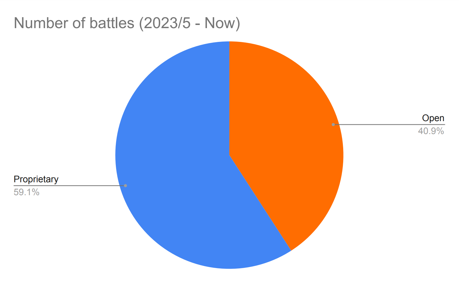 We proudly support open-source models with nearly 41% of battles involving an open model. Our community not only champions open-source initiatives but also understands firsthand how much more cost efficient and customizable these models can be for real-world applications. Moreover, we have been releasing open data since Day 1, including over 1.5 millions prompts and 200K feedback votes to support open research. Expect more coming soon!